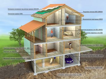 Система плит Green Board® – многофункциональный, экологически чистый и безопасный строительный материал, удовлетворяющий всем критериям комфортного и безопасности жилья. Плиты Green Board® абсолютно безопасны, так как не содержат токсичных и канцерогенных веществ: формальдегида, фенола, асбеста или любых других опасных ингредиентов. В готовом виде плиты Green Board® по объему состоят из древесной шерсти (60%) и портландцемента (40%) с добавлением натурального минерализатора – раствора силиката натрия низкой концентрации. Благодаря оптимально подобранному составу, плиты Green Board® обладают таким сочетанием свойств, которые выделяют их среди аналогичных плитных материалов: При этом плиты удобны и легки в обработке и монтаже, прекрасно удерживают крепежные элементы, что позволяет реализовать различные проектные и дизайнерские решения при ремонте и строительстве. GB3 однослойная плита высокой плотности на основе фибролита толщина: 10, 12, 14, 18, 22, 25 мм размер листа: ширина 600 мм, длина 3000 мм плотность: 1000 - 1400 кг/м3 Основная функция: конструкционная, ограждающая, облицовочная, отделочная GB2 однослойная плита средней плотности на основе фибролита толщина: 18, 22, 25, 35, 50 мм размер листа: ширина 600 мм, длина 3000 мм плотность: 600 - 800 кг/м3 Основная функция: конструкционный материал, применяемый в качестве несъемной опалубки, а также тепло и звукоизоляции стен GB1 однослойная плита низкой плотности на основе фибролита толщина: 25, 35, 50, 75, 100 мм размер листа: ширина 600 мм, длина 3000 мм плотность: 250 – 570 кг/м3 Основная функция: звукопоглащающий материал. Наилучшее решение для клубов, ресторанов, звукозаписывающих студий. Отличный теплоизолятор Применение плит Green Board® Систему плит Green Board® можно применять в жилищно-гражданском строительстве; общественных, спортивных, промышленных зданиях и сооружениях; агропромышленном и сельскохозяйственном комплексе. Плиты Green Board® могут