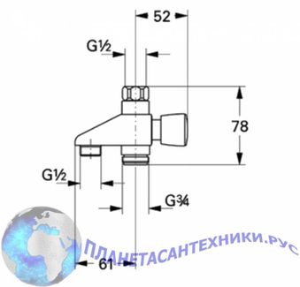 Переключатель подключение душа 1/2" присоединительная гайка 1/2" внешняя резьба 1/2" внешняя резьба 3/4" для монтажа на смесителях GROHE StarLight® хромированная поверхность None