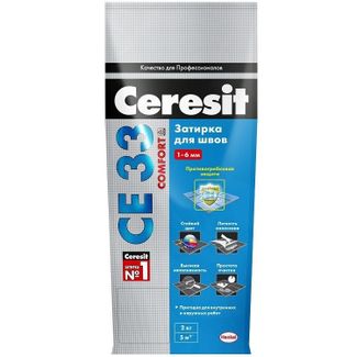 Преимущества затирки Ceresit СЕ33 Comfort: обладает противогрибковым эффектом (формула «MicroProtect»); улучшенные рабочие свойства; пластичность, удобна при замешивании и нанесении; долговременная стабильность цвета ProColor; имеет гладкую поверхность; водо- и морозостойкая; пригодна для наружных и внутренних работ; экологически безопасна. Если затирка подобрана правильно, она не только выполняет декоративную функцию, но предотвращает попадание влаги и пыли в плиточные швы, а также предупреждает развитие плесени и других болезнетворных микроорганизмов. Затирка позволяет укрепить плитку, без нее покрытие вскоре начнет отделяться от стен, требуя повторного ремонта.