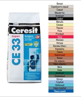Затирка цементная Ceresit СЕ33 Comfort – затирка с противогрибковым эффектом для швов плиточных облицовок шириной до 6 мм. Предназначена для заполнения швов керамических и каменных облицовок, устроенных на недеформирующихся основаниях (таких как бетон, цементные стяжки и штукатурки), на полах и стенах внутри и снаружи зданий. Может применяться в небольших крытых бассейнах.