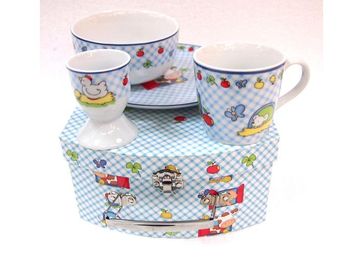 Набор детский 4предмета "клеточка" артикул: ta0075-12015 материал:керамика набор состоит из 4 предметов в который входит подставка под яичко, глубокая тарелка для горячей пищи с подставочкой и чашка, все предметы сделаны с участием уточки. удивительные вещи поднимут настроение и аппетит любому ребенку. None Есть доставка.