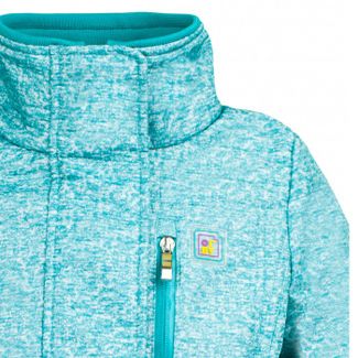 Полуспортивная куртка для девочки цвета бирюзовый меланж. Верх модели выполнен из плащевки, флисовая подкладка, высокий воротник защитит от ветра. Особенности: