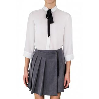 Стильная юбка раскешенного силуэта с оригинальным запахом и застроченными складками. Регулировка на резинке по спинке обспечивает идеальную посадку на талии. Кожанная вставка и ассиметричный крой трендовые дизайнерские элементы для тех, кто хочет выглядеть модно, соблюдая деловой дресс-код. None
