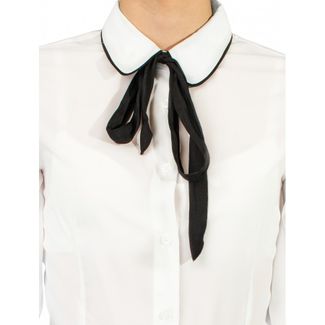 Классические вещи становятся модными, если обратить внимание на детали. Стильная блузка с фигурным низом и удлиненной спинкой. Школьная блузка их хлопка приталенного силуэта играет на контрастах в отделке манжет и планки. Галстук-лента в комплекте и аккуратный воротник mini point завершает образ. Блузка идеально сочетается с брюками или юбкой. Застежка на пуговицы скрыта под планкой. None