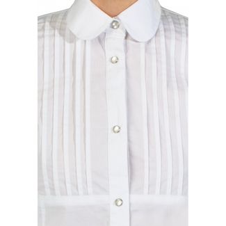 Стильная блузка приталенного силуэта. Контрастная фактура на груди создает оригинальный дизайн модели. Застежка на кнопки - стильная и практичная деталь! Блузка идеально сочетается с классическими брюками и юбками. None