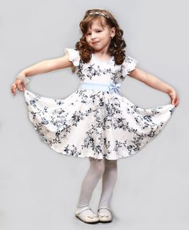 Нарядное летнее платье из чистого хлопка. Материал гипоаллергенный, экологичный, легкий, мягкий, не мнется и не выцветает, устойчив к истиранию. Юбка-солнце, на талии широкий пояс с бантом, короткие волнистые рукава. Если надеть курточку и кеды - получится вариант для повседневной носки. Достаточно надеть туфельки - и будет вариант для праздника. Рекомендована машинная стирка при 40 градусах без предварительного замачивания. None