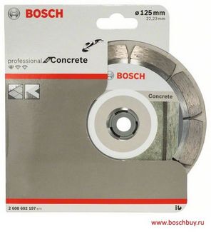 - Bosch Алмазный диск Standard for Concrete 125х22.23 мм по бетону (2608602197 , 2.608.602.197) по выгодной цене 591 р. руб.;