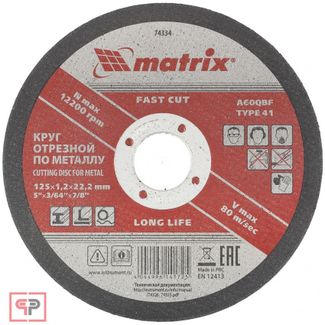 - Matrix Круг отрезной по металлу, 125 х 1,2 х 22 мм Matrix по выгодной цене 31 р. руб.;