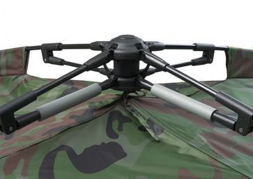 Однослойная трехместная палатка зонтичного типа с автоматической системой JUNGLE CAMP Easy Tent Camo 3, которая позволяет разложить и сложить палатку всего за 10 секунд. Палатка станет необходимым атрибутом для рыбалки, охоты или кемпинга выходного дня. Защиту от непродолжительного дождя обеспечивает пропитка PU, а проклеенные швы предотвращают протекание воды в палатку. Два вентиляционных окна с эффективной системой вентиляции в верхней части палатки, не дают скапливаться конденсату на стенках палатки, позволяя выводить влажные испарения. Противомоскитная сетка в полный размер двери обеспечивает хорошую вентиляцию, препятствуя проникновению насекомых. Для организации пространства внутри палатки предусмотрены карманы для мелочей, крючок для подвешивания фонаря. Благодаря камуфляжной расцветке, палатка не привлекает лишнего внимания на природе. Особенности