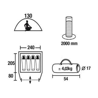 - Палатка для походов выходного дня. Вы можете не боятся дождя и мокрой земли: Водостойкость внешнего тента 2000 мм и проклееные швы гарантируют прекрасную защиту от дождя и ветра. Дно палатки полностью водонепроницаемо и сделано из прочного армированного полиэтилена. Используйте продуманную систему вентиляции, чтобы не было жарко: Входная дверь во внутреннюю палатку состоит частично из глухого полона и на 1/3 из москитной сетки, которая дублируется глухим полотном, и застегивается на молнию. Москитную часть двери можно не закрывать глухой стенкой, это поможет лучшему движению воздуха. В этой четырехместной палатке вентиляция осуществляется через двойной вентиляционный клапан на задней стенке палатки, который представляет собой большую треугольную вставку из москитной сетки на внутренней палатке и треугольное окошко из москитной сетки на внешнем тенте, закрытое снаружи водонепроницаемым клапаном, который можно приоткрыть для лучшей вентиляции. Кроме того внутренняя палатка сшита из дышащего материала, который прекрасно пропускает воздух, что препятствует возникновению конденсата. Используйте продуманные производителем мелочи для Вашего удобства: Внутри палатки по бокам есть три кармашка для мелочей, больше Вам не надо искать зубную щетку и другие нужные мелочи по всей палатке и в рюкзаке. Колечко на куполе внутренней палатки Вы можете использовать для подвески кемпингового фонаря. В небольшом тамбуре Вы прекрасно можете разместить обувь и рюкзаки.