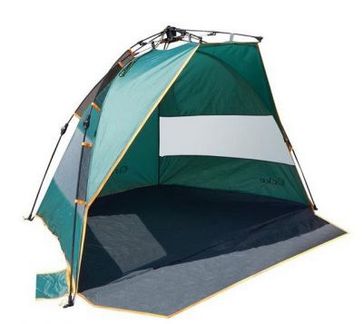 Полувтоматический тент-укрытие для пляжного отдыха. Сетки для вентиляции, специальные карманы размещения груза для повышения ветроустойчивости. Пол из тарпаулина для защиты от песка. Устанавливается за 30 секунд! Новая ткань со специальной пропиткой защищает от ультрафиолета до 90% (UPF 50+) и препятствуюет распространению огня.В комплекте идут колышки. None