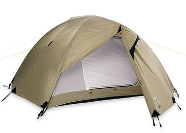 Классическая куполообразная палатка на двоих. Два больших закрываемых окна для вентиляции с сеткой от комаров. Внутренняя палатка с точками крепления купола. None
