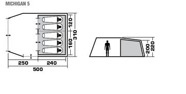 Пятиместная двухкомнатная (3+2) двухслойная палатка для кемпинга Michigan 5 отлично подойдет большой компании для продолжительного отдыха на природе. Конструкция палатки - П-образная полубочка имеет увеличенный внутренний объем. Светлый и просторный тамбур высотой 210 см. с двумя входами имеет три обзорных окна. Спальное отделение отлично вентилируется благодаря 3-х позиционному вентиляционному окну. Москитные сетки на входах в спальни защитят вас от насекомых, стенка между комнатами съемная.Особенности:П-образная конструкция увеличивает полезное внутреннее пространство палатки по сравнению с традиционной конструкцией,Тент палатки из полиэстера с пропиткой PU надежно защищает от дождя и ветра,Все швы проклеены,Высокое, удобное, вместительное и светлое внутреннее помещение с двумя входами,Москитная сетка на одном входе в тамбур,Обзорное окно со шторкой в тамбуре,Дно из прочного водонепроницаемого армированного полиэтилена позволяет устанавливать палатку на жесткой траве, песчаной поверхности, глине и т.д.,Дуги из прочного стеклопластика,Внутренняя палатка из "дышащего" полиэстера, обеспечивает вентиляцию помещения и позволяет конденсату испаряться, не проникая внутрь палатки,Трехпозиционное вентиляционное окно в спальном отделении (закрыто, частично открыто, полностью открыто),Москитная сетка на каждом входе в спальное отделение в полный размер двери,Внутренние карманы для мелочей во внутренней палатке,Возможность подвески фонаря в палатке,Для удобства транспортировки и хранения предусмотрен чехол из прочного полиэстера OXFORD, с двумя ручками и закрывающийся на застежку-молнию. None