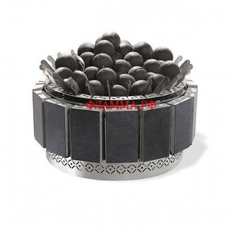 Печь подходит под комплектацию чугунными ядрами. Высокая теплоаккумулирующая способность чугунных ядер обеспечивает постоянство и стабильность температуры в парной без частого включения ТЭНов.