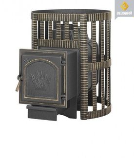 Банная чугунная печь Легенда Ковка 16 (271) укомплектована чугунной герметичной дверцей Везувий 271. Конвекционно-вентилируемый кожух "Ковка" изготовлен из металлической текстурированной полосы покрашенной термостойкой краски и покрытая патиной «Бронза».