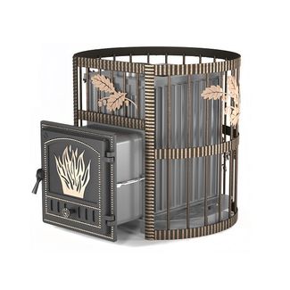 Чугунная банная печь Эверест 24 в кованной сетке. Большая мощность, эстетичный внешний вид, высокая теплоёмкость, вместительная каменка – вот ключевые отличия сборной чугунной печи Эверест 24. Печь рассчитана на объём парного отделения от 15 до 25 кубических метров. В каменку умещается 20-25 килограммов камней крупной фракции. Сетка сделана по комбинированной технологии, с использованием стального прутка и кованой стальной ленты. Декоративные элементы придают сетке элегантный внешний вид и хорошо вписываются в тематический банный дизайн. К основанию печи крепятся фасонные стальные детали, образующие поверхность для укладки камней. Сетка предназначена для обустройства открытой каменки, повышения теплоёмкости печи, выравнивания скорости нагрева парной. Наполнение сетки камнями помогает защитить парильщиков от жёсткого инфракрасного излучения, возникающего при нагреве металлической поверхности печи.Сетка вмещает в себя 240-280 килограммов камней крупной и средней фракции. None