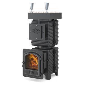 Поворотная чугунная банная печь EVEREST Лёгкий Пар ПРОФИ предназначена для обогрева парных помещений объёмом до 40 кубических метров.Печь состоит из двух модулей: топочной камеры и закрытой каменки из чугуна. Наиболее термонагруженные участки печи сделаны из жаропрочного чугуна толщиной 20 миллиметров. Для увеличения площади теплоотдачи по всей поверхности печи устроены ребра жесткости, за счёт которых печь быстрее отдаёт тепло в окружающее пространство и способствует ускорению нагрева парной, каменного заклада и облицовки печи.Топочная часть и каменка при установке печи могут быть повёрнуты друг относительно друга. Это позволяет направить отверстие каменки в парилке в удобную сторону, а также организовать обслуживание печи и укладку дров в печь прямо из парной. Каменка и внешний корпус изготовлены из чугуна, крепятся друг к другу по типу «паз-гребень» с использованием термостойкого герметика.Закрытая каменка из чугуна толщиной 10 миллиметров сверху и снизу имеет закруглённую конструкцию. Каменка находится на месте пламегасителя. Закрытая каменка рассчитана на размещение 60 килограммов камней. В качестве открытой каменки выше основной части печи размещён стальной поддон для камней, куда умещается более 60кг камней. Совокупный вес печи и камней составляет более 400 кг.Для получения пара обе каменки печи EVEREST Лёгкий Пар ПРОФИ оборудованы парогенераторами. Парогенератор закрытой каменки зафиксирован в корпусе печи, а парогенератор открытой каменки укладывается между камнями в верхнем поддоне. None