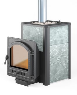 Преимущество печи в том, что топка печи состоит из 3-х ЧУГУННЫХ элементов. На стыке между ними используется керамический шнур с рабочей температурой 1200 градусов. То есть топка печи абсолютно герметична! Для фиксации деталей между собой применяется болтовое соединение, что даёт 100% гарантию безопасности при эксплуатации.Конвекционно–вентилируемая облицовка, изготовленная из экологически чистой горной породы , который обладает большой теплоёмкостью, что позволяет камню в короткие сроки нагреваться и максимально долго удерживать стабильную температуру в парильном помещении, а также гасить жёсткое инфракрасное излучение Камень обладает исключительными лечебными свойствами: помогает при головных болях, при нестабильном артериальном давлении, при простудных заболеваниях, воспалительных процессах в почках и пищеварительной системе, снимает повышенную возбудимость и нервозность, сглаживает эмоциональные всплески. Облицовка из натурального камня при нагреве способна аккумулировать тепло, что гарантирует максимально равномерный прогрев и сохранение тепла. Банная печь ЛЕГЕНДА 22 (205) укомплектован чугунной каминной дверцей Везувий 205 с большим жаропрочным стеклом «SCHOTT ROBAX», с оборудованной системой самоочистки, что позволяет визуально контролировать горение и любоваться видом живого огня. Данная печь рассчитана на объем парильного помещения 12-24 м3. None