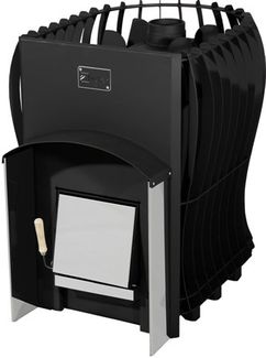 Печь имеет тройную защиту от жесткого инфракрасного излучения, специально разработанный для топок «Вулкан» чугунный колосник, обеспечивает устойчивое горение даже сырых дров. Турбо-топка из качественной конструкционной стали в местах наибольшего нагрева имеет толщину 10 м, оптимизирует процесс горения для максимального выделения тепла и обеспечивает значительную экономию дров. Прочистное отверстие топки позволяет удобно и быстро провести обслуживание печи. Патрубок печной трубы изготовлен из 8мм стали и подходит под два диаметра печных труб 110 и 115мм. Дополнительные ребра обеспечивают высокую жесткость печи, увеличивают поверхность, отдающую тепло камням, увеличивают срок службы топки, эффективно отводя от нее тепло. Конструкция кожуха обеспечивает закладку оптимального объема камней, увеличивая тем самым теплоемкость печи и качественные кондиции пара. None