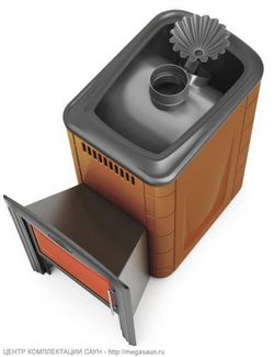 Дровяная банная печь среднего класса с закрытой каменкой.