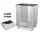 Модельный ряд PEKO предлагает печи для коммерческих парных в диапазоне мощности от 12 кВт до 24 кВт с объёмом парной от 17м3 до 44 м3 Модельный ряд электрических печей представлен в исполнении корпуса «хром глянцевый», комплектуются подробными инструкциями.