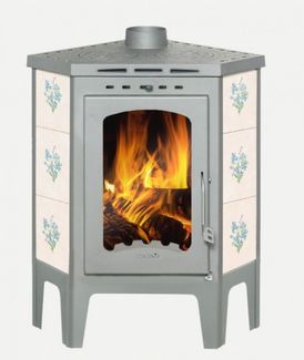 Печь-камин БАВАРИЯ УГЛОВАЯ с плитой незабудка