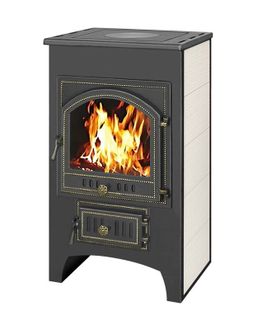 Печь-Камин ПК-02 (205) с плитой «Везувий В1» беж 12 кВт (200 м3) Ø 150мм