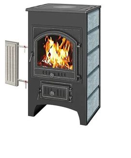 Печь-Камин ПК-02 (205) с плитой «Везувий В1» и т о, талькохлорит, 12 кВт (200 м3) Ø150мм -
