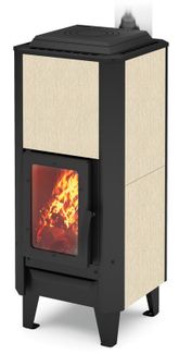 Печь отопительная Теплодар Вертикаль Керамика Особенности и преимущества: Отопительно-варочные печи-камины «Вертикаль» полюбились многим за свои уникальные качества. При скромных размерах они эффективно отапливают помещения объемом до 120 куб.м и способны в режиме длительного горения поддерживать тепло до 8 часов на одной закладке дров. При желании «Вертикаль» может прекрасно справиться с отоплением смежных помещений — на задней стенке печи размещены специальные теплоотводы. Еще одна задача, с которой «Вертикаль» справляется на ура, — возможность приготовления пищи. Печь оснащена полноценной чугунной плитой.