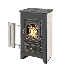 Печь-Камин ВЕЗУВИЙ ПК-01 (270) изготовлена из высококачественной конструкционной стали , предназначена для отопления жилых и подсобных помещений до 150 м³. Конвекционно–вентилируемая облицовка, изготовленная из экологически чистой керамической плитки, обладающей большой теплоёмкостью, что позволяет в короткие сроки нагреваться и максимально долго удерживать стабильную температуру. Плитка хорошо поглощает влагу , а при пересушенном воздухе напротив ее отдает , что позволяет поддерживать комфортную атмосферу в помещении. Печь оснащена чугунной дверцей с жаростойким стеклом и регулировкой режимов горения. Чугунная колосниковая решетка при нагревании не деформируется и обеспечивает отличный приток воздуха в топочную камеру. Чугунная варочная плита позволит без труда приготовить пищу. Встроенный теплообменник позволит без проблем подключить печь к отопительной системе помещения.Топочная камера, футерована легкозаменяемым высококачественным шамотом, прогревается дольше обычной чугунной топки ,но теплоотдача гораздо больше. Шамот предохраняет стенки печи от перегревания, тем самым увеличивает срок службы печи. Зуб отбойник из нержавеющей стали, толщиной 2 мм, препятствует "опрокидыванию тяги" , что обеспечивает надежную тягу при любых погодных условиях. Длительность горения одной закладки дров - до 5 часов.Возможность подключения электрического вентилятора, который обеспечивает «турбореактивный» разогрев помещенияСрок службы не менее 10 лет None