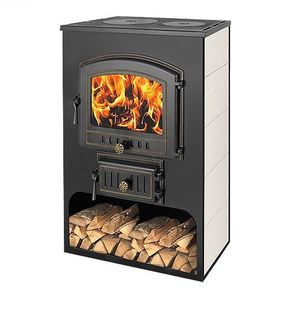 Печь-Камин ВЕЗУВИЙ ПК-03 (224) с плитой "Везувий В3" бежевый 12 кВт (200 м3) Ø150мм