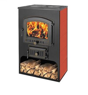 Печь-Камин ВЕЗУВИЙ ПК-03 (224) с плитой "Везувий В3" красный 12 кВт (200 м3) Ø150мм