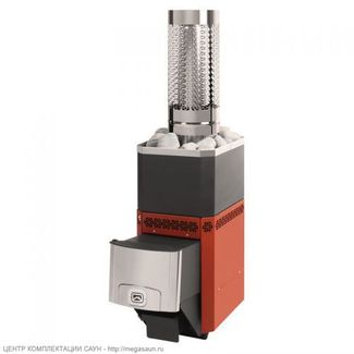 Вес: 42 кг. Мощность: 18 кВт. Габариты (Г×Ш×В): 588×338×816 Объём помещения: от 10 м³ до 18 м³ Максимальная масса камней: 90 кг. Диаметр дымохода: 115 мм. Подключение газовых горелок: возможно Тип каменки: открытая Материал топки: из нержавеющей стали Дверца: глухая Нагрев воды: бак для воды на трубу