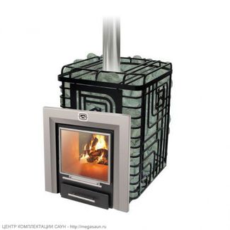 Вес: 110 кг. Мощность: 20 кВт. Габариты (Г×Ш×В): 835×567×870 Объём помещения: от 10 м³ до 20 м³ Максимальная масса камней: 180 кг. Диаметр дымохода: 115 мм. Подключение газовых горелок: не подключаются Тип каменки: открытая Материал топки: из нержавеющей стали Дверца: каминная со стеклом Нагрев воды: бак для воды на трубу