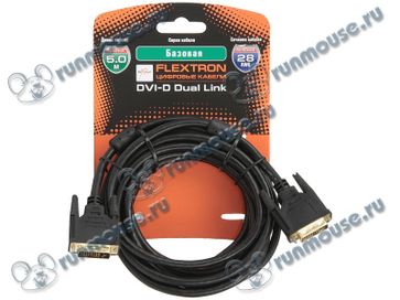 Кабель DVI-D Dual Link Flextron "Базовый" CDD-BAS-DL-5.0-01-HB-K, позолоченные контакты, с ферритовыми кольцами (картон) (5.0м) (ret) [103512]