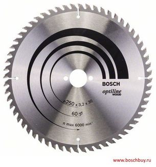 - Bosch Пильный диск Bosch Optiline Wood 250х30 мм 60WZ (2608640729 , 2.608.640.729) по выгодной цене 1 879 р. руб.;