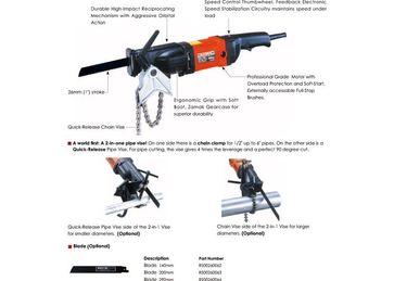 RS26 объединяет все возможности для мощного, эффективного, чистого реза. Орбитальный обратно-поступательный механизм специально разработан для длительного использования. С ее трубными тисками и прямой ручкой, RS26 является особенно эффективной пи...