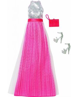 Barbie Серебристо-розовое платье с аксессуарами Барби