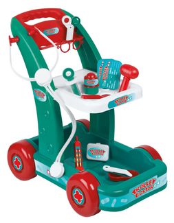 Все, что нужно юному доктору, в одной тележке! Большой набор включает: стетоскоп, термометр, ножницы, очки, кость, печенье, шприц, визитные карточки и многое другое. None
