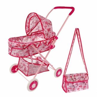 Размер коляски (ДхШхВ) составляет 56х36х68 см, диаметр колёс: 11 см, размер сумки (ДхШхВ): 23х12х15 см. Изготовлено из металла с элементами пластмассы и текстильных материалов.