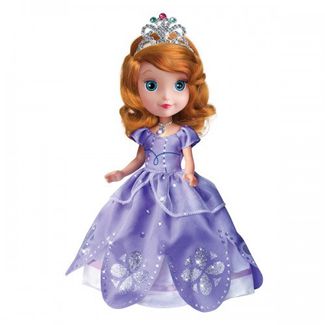Кукла "София Прекрасная" олицетворяет собой главную героиню популярного одноименного мультика от компании "Дисней". Она выглядит в точности как персонаж из мультфильма. У куклы реалистичные пластиковые глаза и густые ресницы, которые делаю взгляд особенно выразительным. София одета в изящное фиолетовое платье и туфельки, а голову украшает расположившаяся на красивых локонах диадема. Ручки и ножки куколки подвижны, а волосы можно расчесывать.
