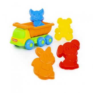 Набор №271: Кеша, автомобиль-самосвал + формочки (белочка + пёсик + котёнок + медведь)