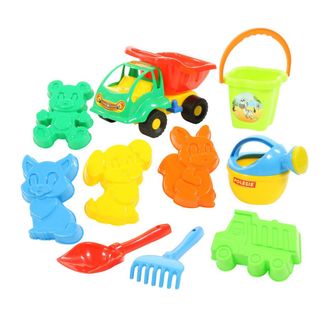 - Набор №310 (в рюкзаке): Муравей, автомобиль-самосвал + ведро-цветок среднее, лопатка №5, грабельки №5, формочки (белочка + пёсик + котёнок + медведь), 1 формочка транспортная, лейка малая №4 по выгодной цене 563 р. руб.;