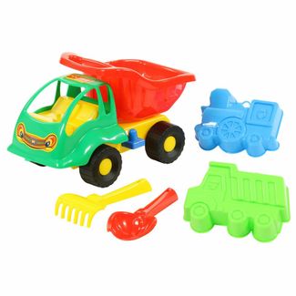 Набор №49: Муравей, автомобиль-самосвал + совок №2, грабельки №2, формочки (самосвал + паровоз)