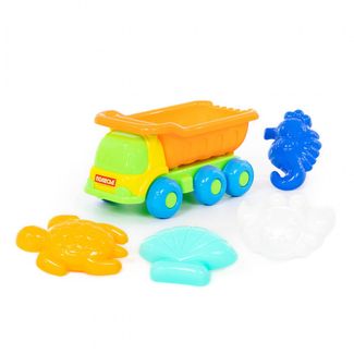Набор №573: Кеша, автомобиль-самосвал + формочки (краб №2 + морской конёк + ракушка №2 + черепаха)