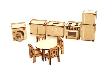 Набор мебели "Кухня" создан специально для одной из комнат кукольного дома "Коттедж".Мебель выполнена из березовой фанеры. None