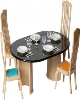 Набор мебели для столовой Коллекция Огонек поможет воссоздать реальную картину посиделок за обедом кукольной семьи. Гарнитур состоит из стола, четырех стульев со спинкой и небольшим сервизом на четыре персоны: тарелки мелкие и глубокие, вилки, ложки и бокалы. Этот набор способствует развитию у детей воображения и творческого потенциала. Минимальная сумма заказа 1500 руб. Возможен самовывоз. Есть доставка.