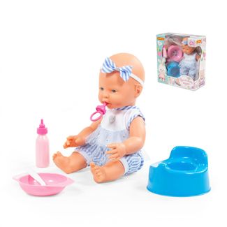 Пупс Весёлый (35 см) с соской + аксессуары (4 элемента) (в коробке)