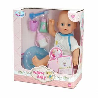 Милый малыш-пупс поставляется в комплекте с аксессуарами: бутылочкой, соской-пустышкой, горшком, свидетельством о рождении, муляжами зубной пасты и зубной щётки. У крохи твёрдое тельце, подвижные ручки, ножки и голова. Пупса можно напоить водой из бутылочки, и он пописает, словно настоящий младенец! Глазки малыша открыты в положении «стоя» и закрыты в положении «лёжа». None Есть доставка.