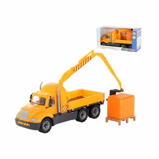Майк, автомобиль-кран с манипулятором + конструктор Супер-Микс - 30 элементов на поддоне (в коробке)
